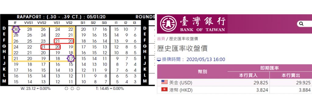 - 鑽石的價格會隨著『國際報價』和『美金對台幤』的匯率而有所浮動